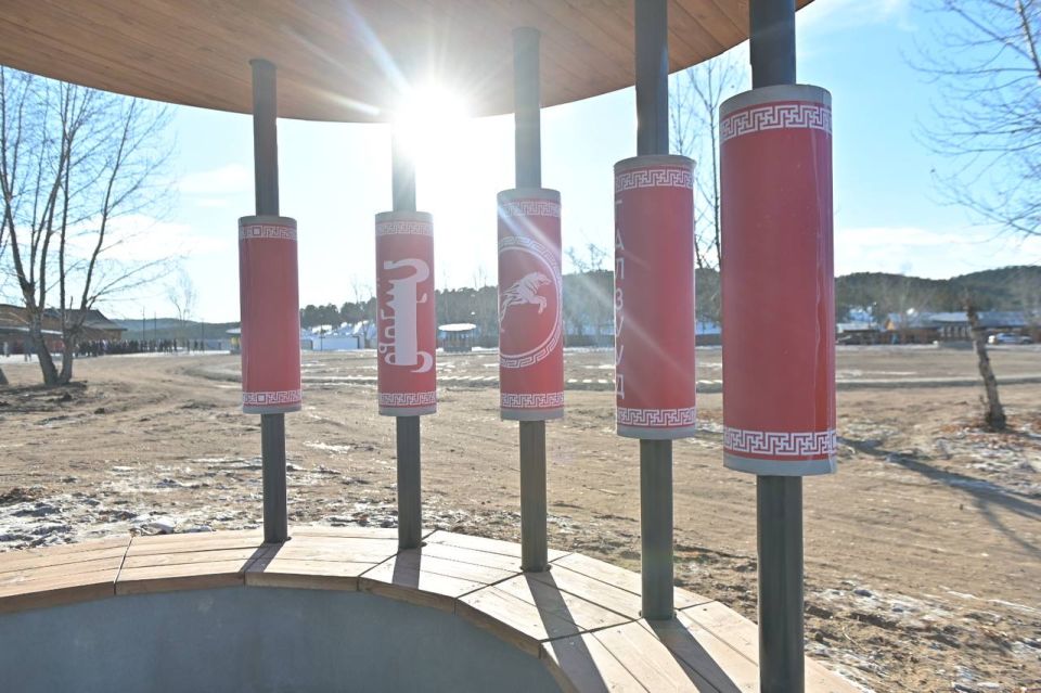 На территории парка возвели сцену, лукодром, смотровую площадку с навесом и качелями, установили беседки 11 хоринских родов.