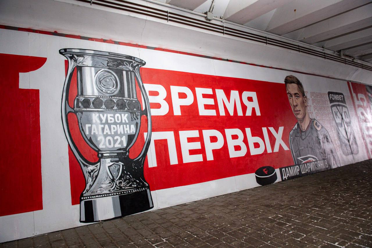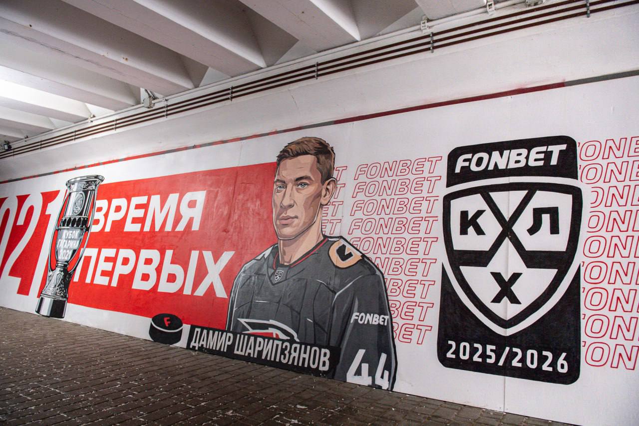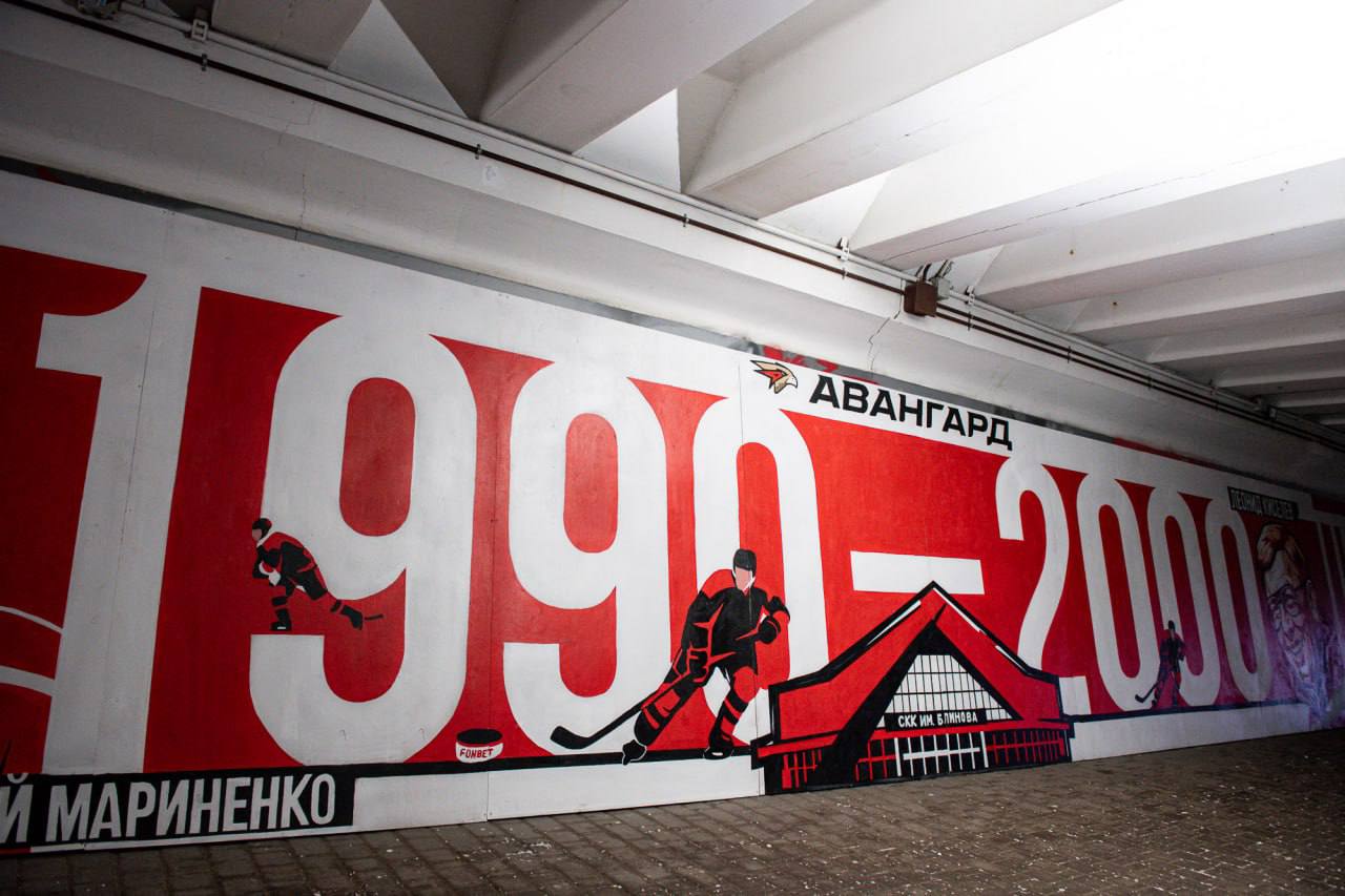 «Авангард» и FONBET в честь 75-летнего юбилея омского футбола украсили подземный переход возле G-Drive арены.