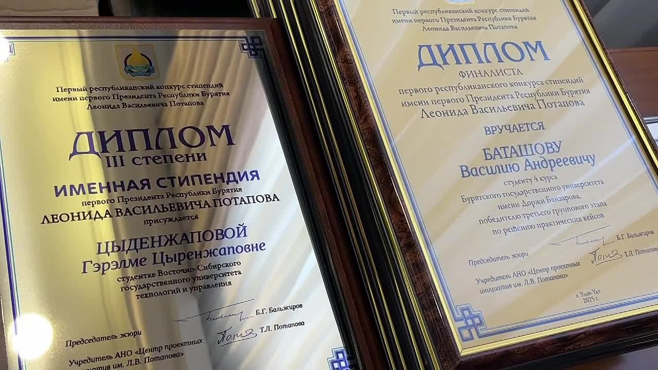 Именной стипендией первого Президента Бурятии, дипломами и денежными призами удостоены 11 студентов ВУЗов Бурятии. Конкурс стартовал в октябре этого года и проходил в 3 этапа.