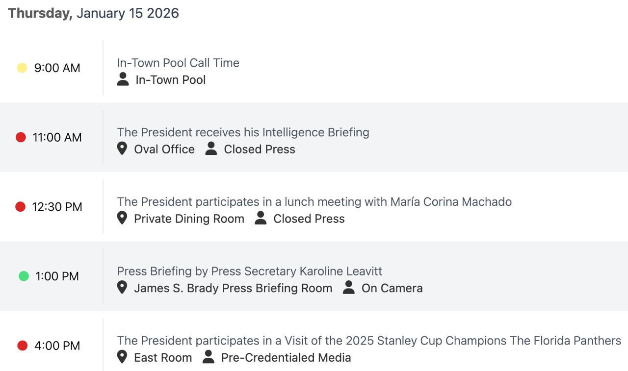 В полночь по московскому времени встретится с хоккейной командой из Флориды, завоевавшей в 2025 году кубок Стенли, говорится в расписании Трампа.