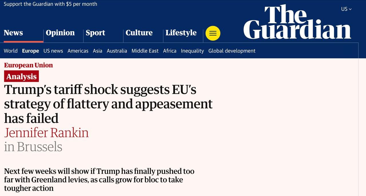 Но теперь Трамп со своими претензиями на Гренландию, "возможно, зашел слишком далеко в отношениях с ЕС".