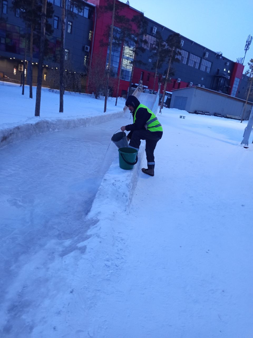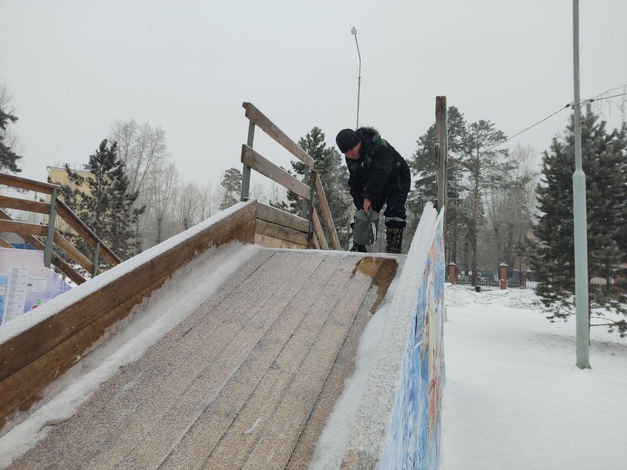 Каждое утро сотрудники Дирекции парков заливают склоны и регулярно контролируют состояние покрытий.
