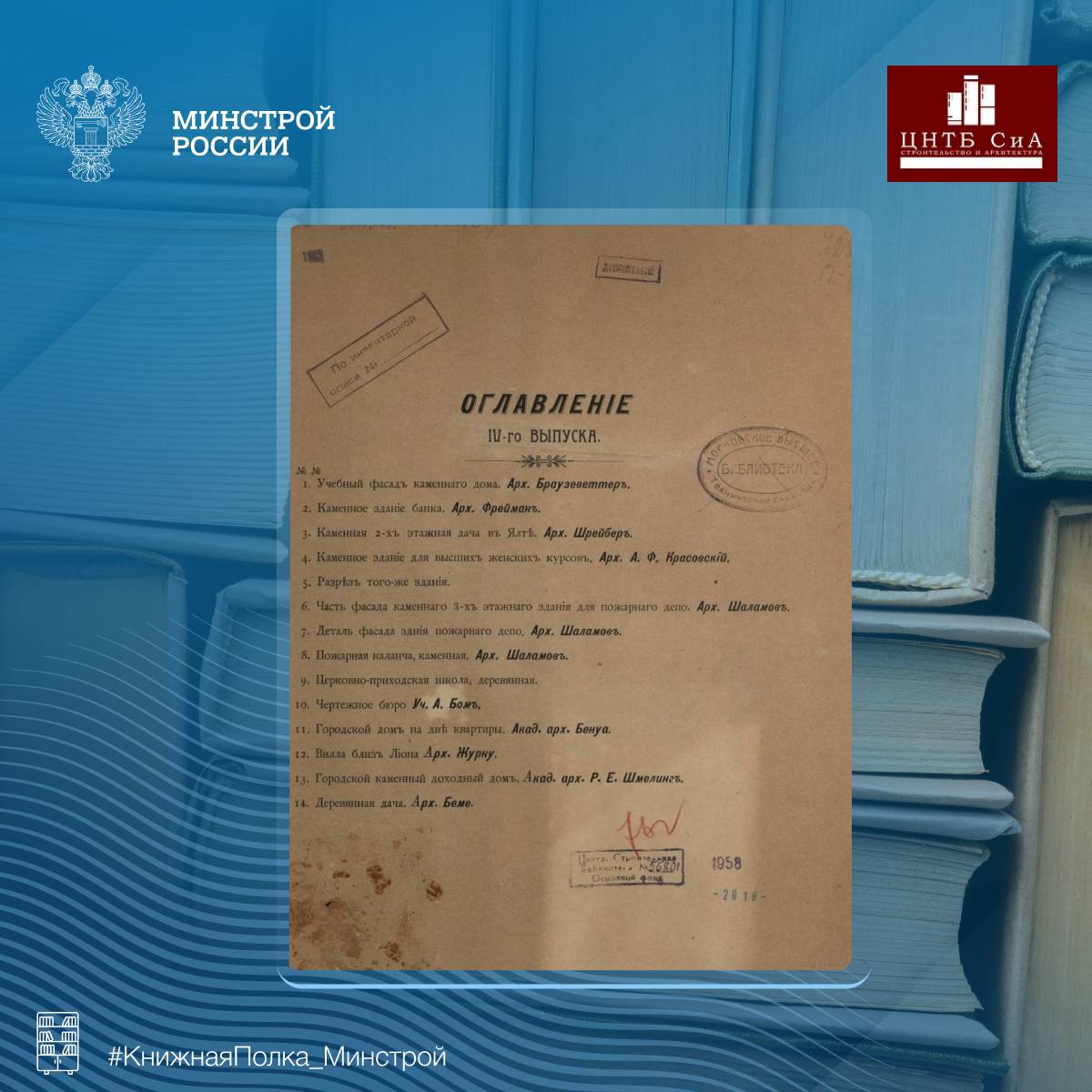 Сегодня в нашей рубрике #КнижнаяПолка_Минстрой - необычное издание опубликованное в 1903 году «Сборник учебных фасадов» от Первых Московских Строительных Курсов