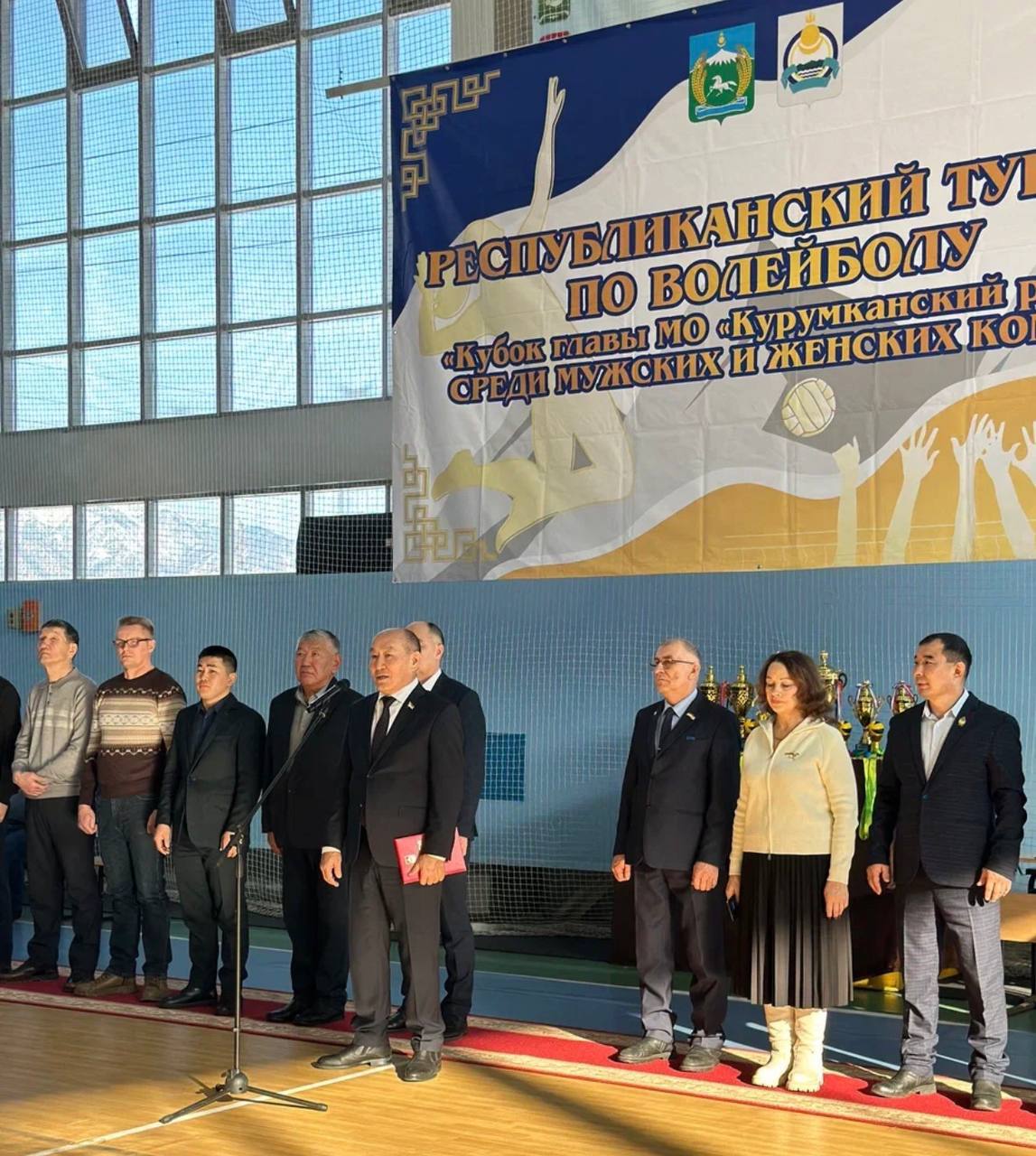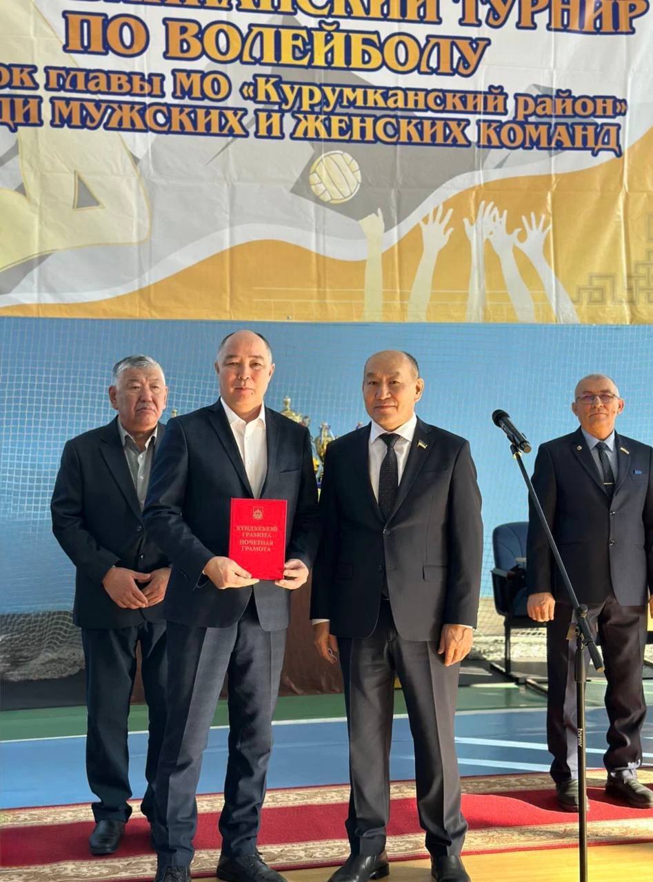 В рамках рабочей поездки по Курумканскому району вице-спикер Народного Хурала Бурятии Баир Гармаев на площадке физкультурно-оздоровительного комплекса села Курумкан принял участие в торжественном открытии VIII Республиканского турнира по волейболу «Кубок главы муниципального образования «Курумканский район» среди мужских и женских команд».