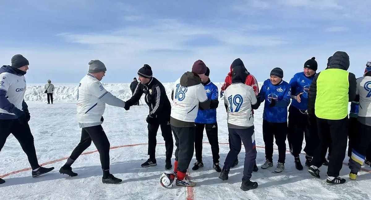 Ветераны бурятского футбола сыграли прямо на льду озера.